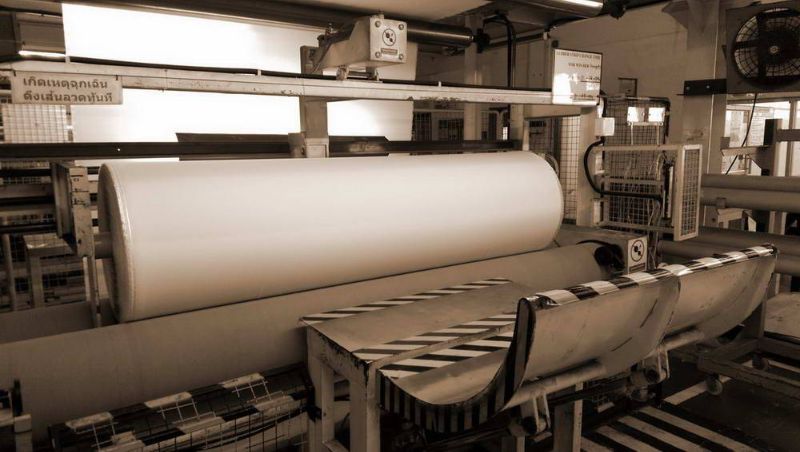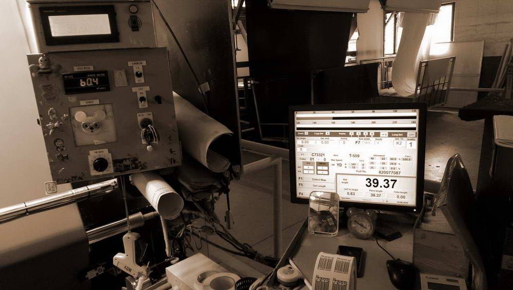โปรแกรมที่ออกแบบใช้ควบคุมกระบวนการตัดแบ่งผ้าที่ผ่านการทอ และปริ้นท์ลาเบล ประกอบการผลิต